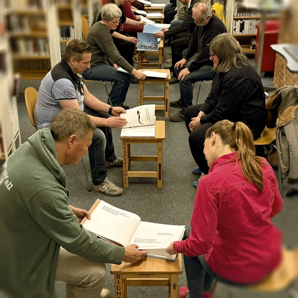 Die Teilnehmer im Gespräch über die Bücher.